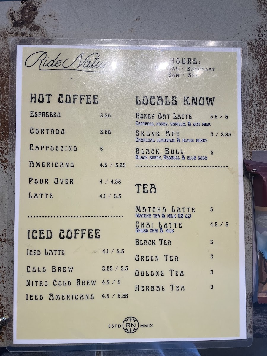 Visitors can enjoy their drinks while kicking back in the cozy seating areas, or even catch some action at the outdoor half pipe. The vibe is relaxed yet exhilarating, making it perfect for both mellow afternoons and lively gatherings. Best of all, 100% of proceeds support the Ride Nature mission, ensuring every sip contributes to a greater cause. Come for the coffee, stay for the community!